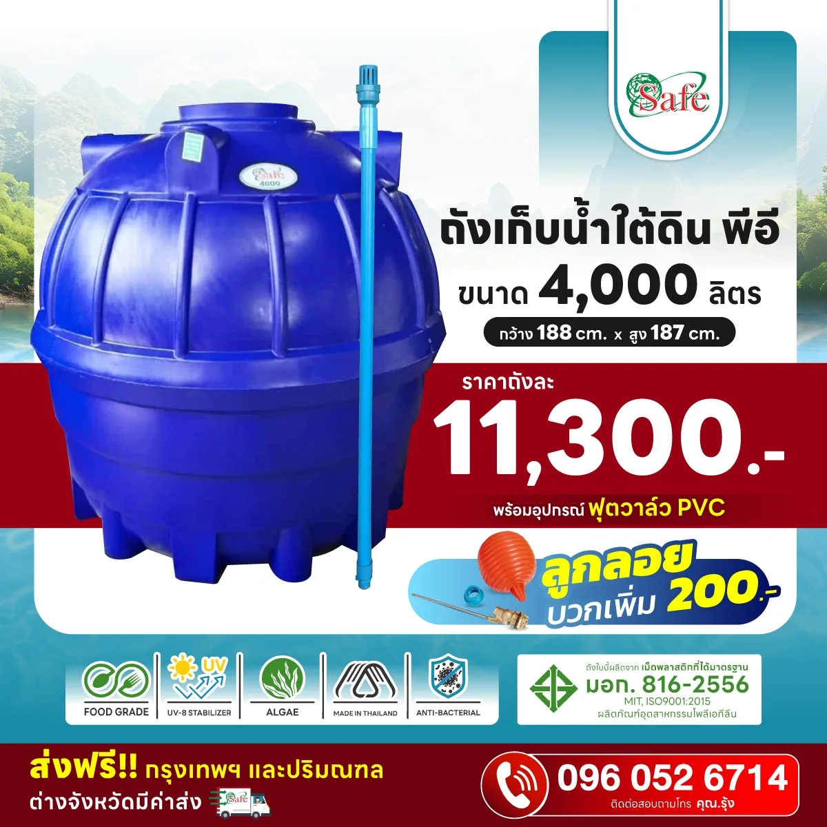 Safe ถังน้ำคู่บ้าน จัดส่งทั่วไทย พร้อมบริการเก็บเงินปลายทาง!